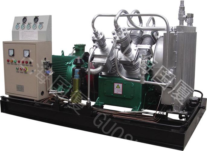 400公斤壓力空氣壓縮機(jī)主要用于油田注汽,鉆井、海洋勘探,軍工,檢漏,吹掃,船舶等行業(yè)。廣泛適用于油田專用開(kāi)采、化工、有色金屬、科研院校、國(guó)防軍工、氣密性檢測(cè)、航天航空等領(lǐng)域。DX系列400公斤壓力空氣壓縮機(jī)由上海國(guó)廈壓縮機(jī)有限公司研發(fā)生產(chǎn),是一種高壓力且大排量的高壓供氣設(shè)備。具有能耗低,性能穩(wěn)定,維護(hù)簡(jiǎn)單的優(yōu)點(diǎn),且結(jié)構(gòu)緊湊,占地面積小,造型美觀,設(shè)計(jì)先進(jìn),機(jī)組振動(dòng)小,由電動(dòng)機(jī)或柴油機(jī)驅(qū)動(dòng),性價(jià)比高于國(guó)外同類(lèi)產(chǎn)品。作為中國(guó)軍用壓縮機(jī)的搖籃,建廠10余年來(lái)國(guó)廈壓縮機(jī)因質(zhì)量高信譽(yù)好而蜚聲海內(nèi)外。400公斤壓力空氣壓縮機(jī)的工作原理是將自然狀態(tài)下的空氣經(jīng)過(guò)五級(jí)壓縮,終壓縮為10Mpa-40Mpa(兆帕)的壓力另外我司高壓空氣壓縮機(jī)可根據(jù)用戶要求靈活設(shè)計(jì)產(chǎn)品的壓力和排氣量,小型高壓空氣壓縮機(jī)的每分鐘排氣量0.1-0.5立方,壓力高達(dá)40MPA,重量小的只有40Kg;大型高壓空氣壓縮機(jī)每分鐘排氣量1-60立方,壓力高可達(dá)40MPA,客戶要根據(jù)自己的要求靈活選擇合適的壓力和排氣量,本文僅僅是部分樣品。