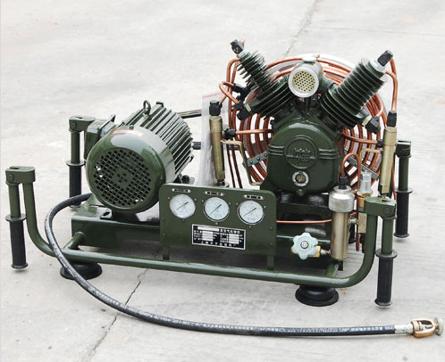 三級壓縮、風冷、活塞式空氣壓縮機,配有高強度尼龍冷卻風扇,高壓安全閥壓力自由調控,保障使用安全 ,高新技術處理的耐磨的CMC合金氣缸、活塞、曲軸等部件保證長時間負荷的要求,裝配自動排污收集器和自動停機裝置(也有手動型號) ,驅動方式有380V/220V電機(防爆電機)、柴油機、汽油機供用戶自由選擇,設計有一套或者兩套充氣閥、連接件和充氣管(一套充瓶可以同時充一個氣瓶;兩套可以充兩個氣瓶),有時間允許記錄系統(tǒng),充氣時間自由掌握,設有防震的壓力表,凈化系統(tǒng)為活性炭、分子篩保證出氣純凈優(yōu)質和安全。